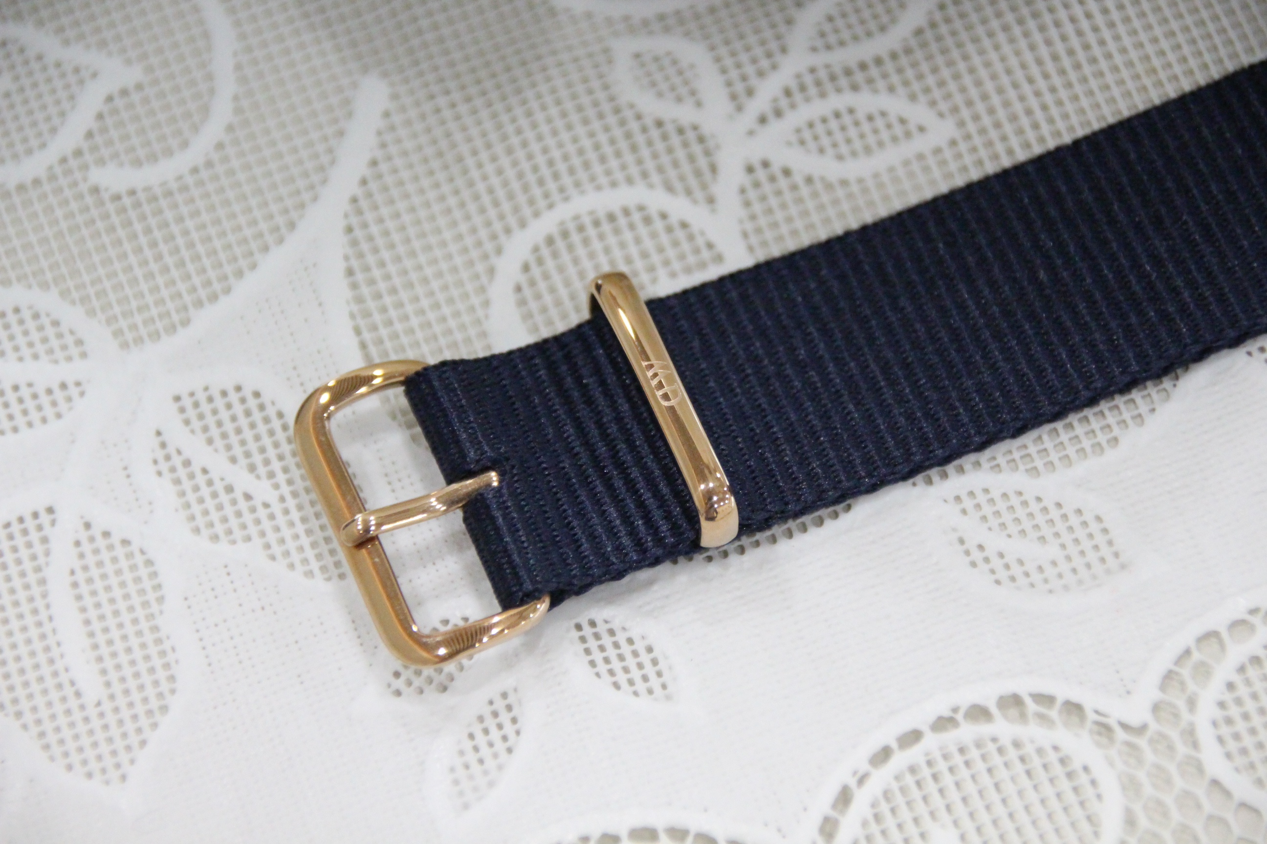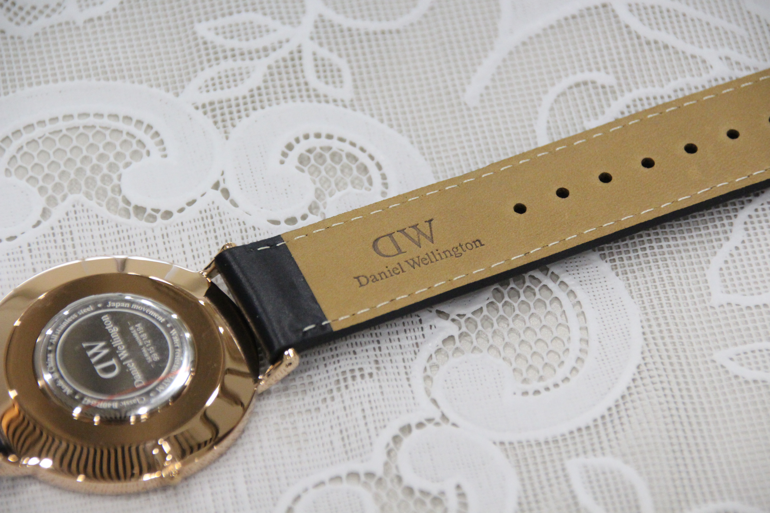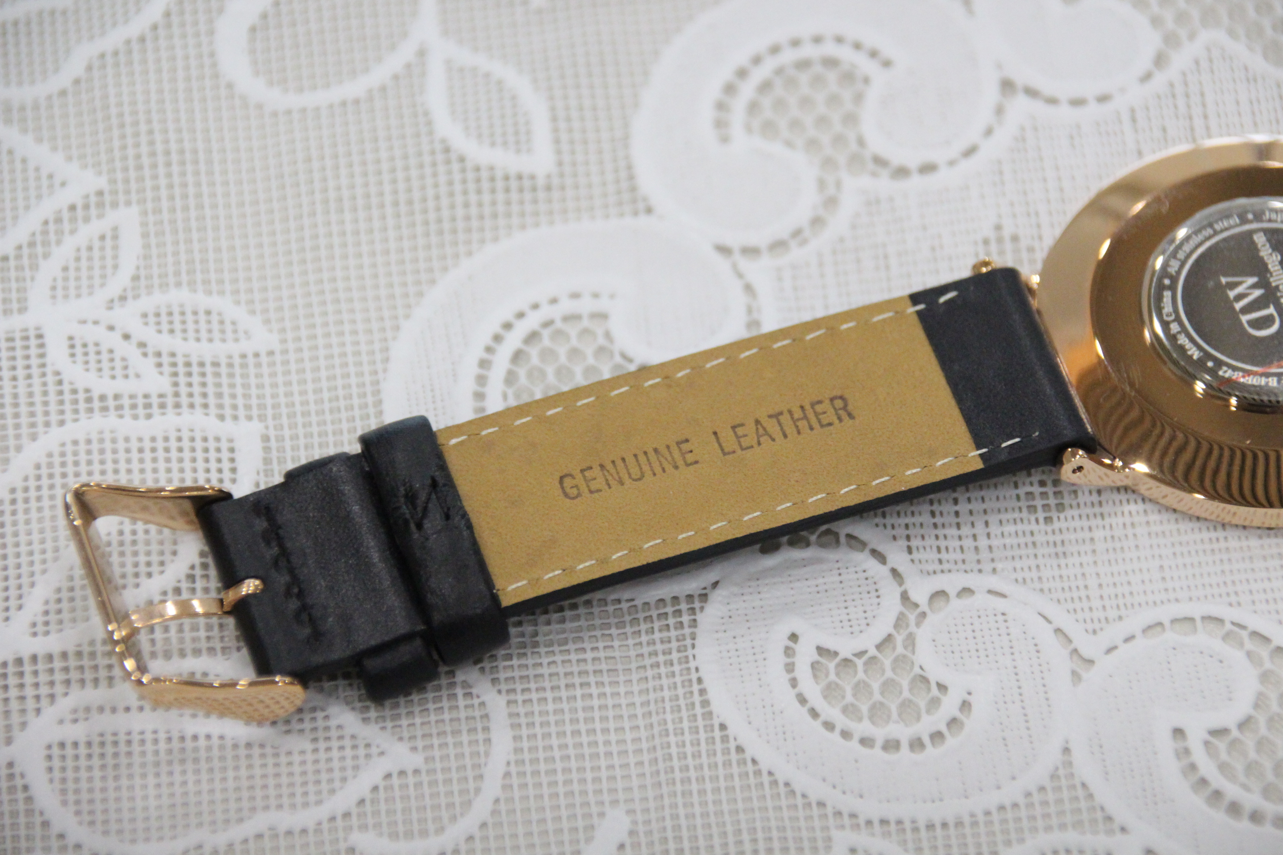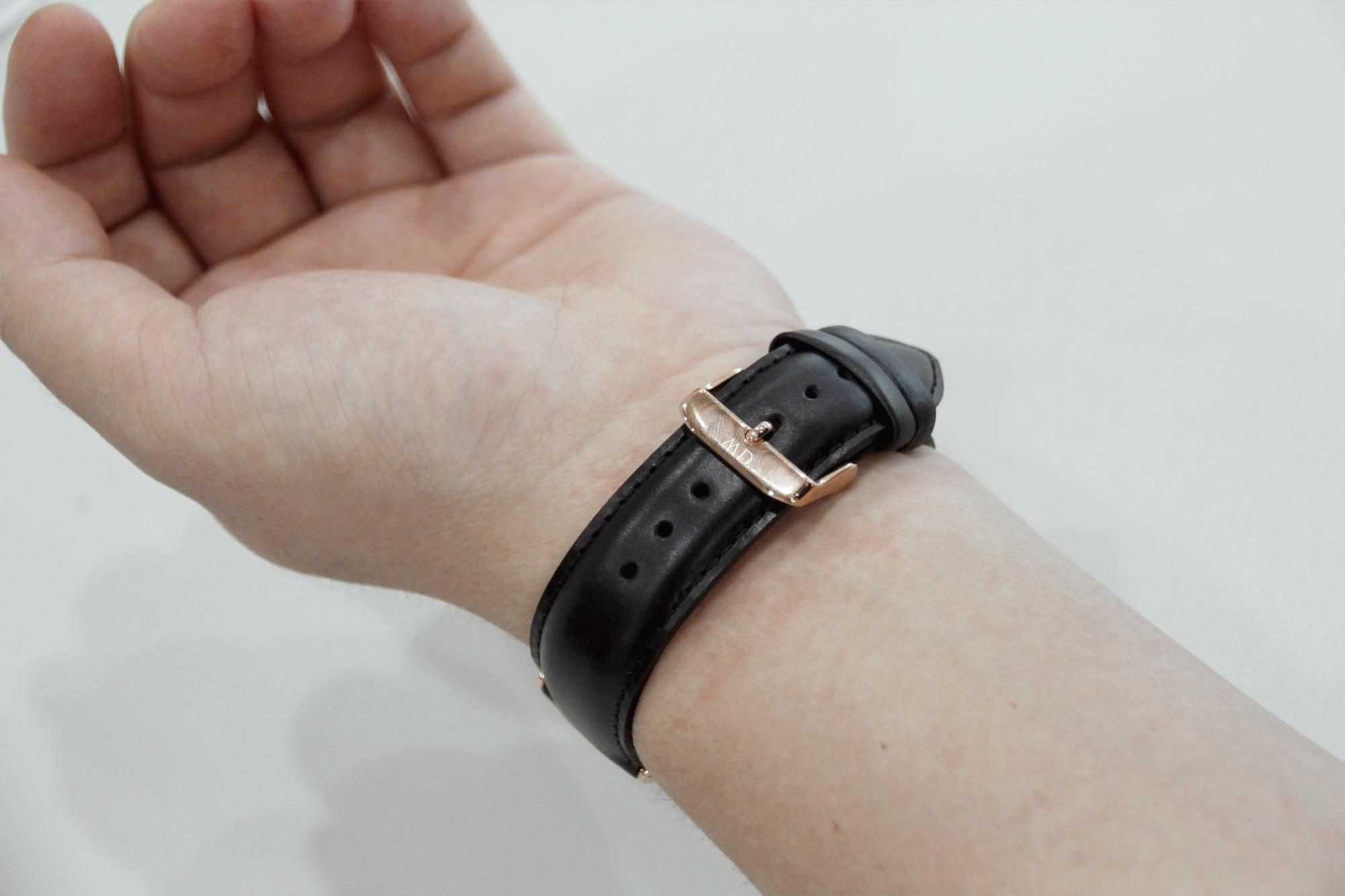 시계 스트랩 안쪽에 다니엘 웰링턴 로고가 적혀 있고
